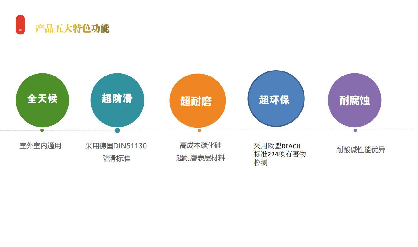 室內室外通用,特殊抗老化成份及配方保證防滑地板在室外使用時的使用壽命